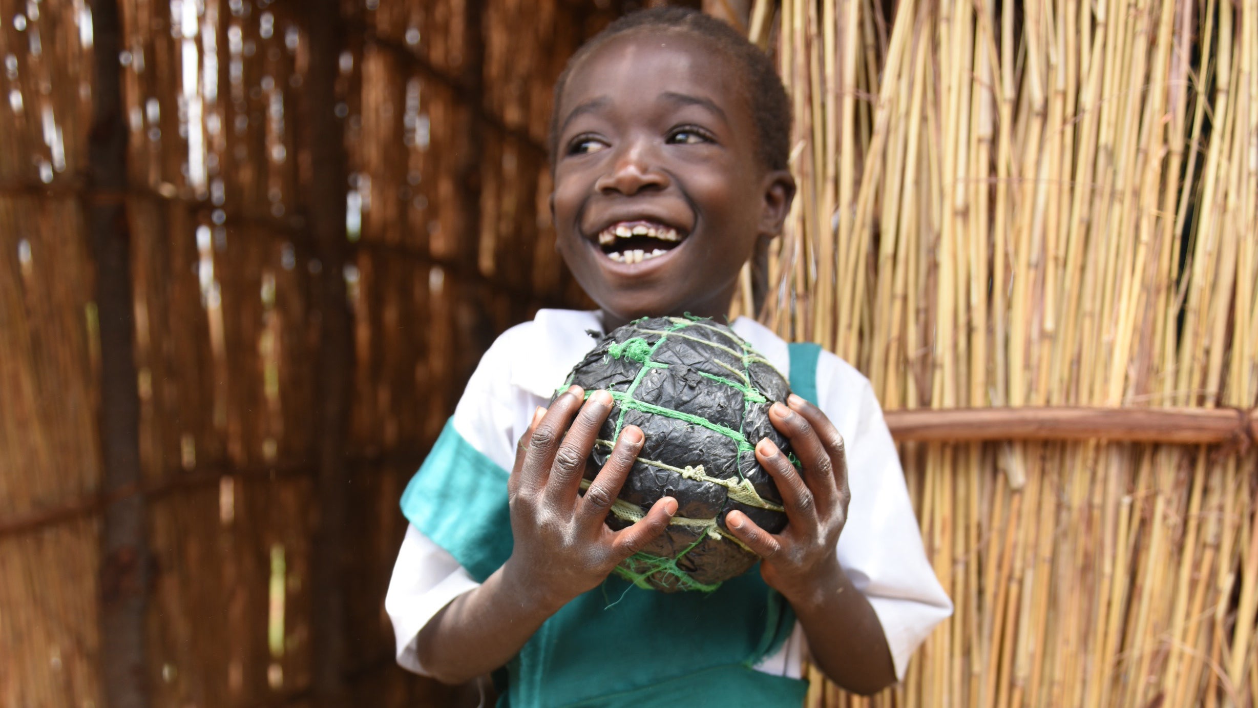 Children in Malawi love soccer. Across the south African country, kids compete on school teams and play pick-up games at any opportunity. But few children get to play with real soccer balls. In communities where water is scarce and meals are infrequent, owning a soccer ball is a luxury. Determined to play, kids make their own balls from plastic and other materials often scavenged from the trash. Paper or plastic is wadded up, packed tightly, covered with more plastic, and secured with an intricate grid of knotted string.