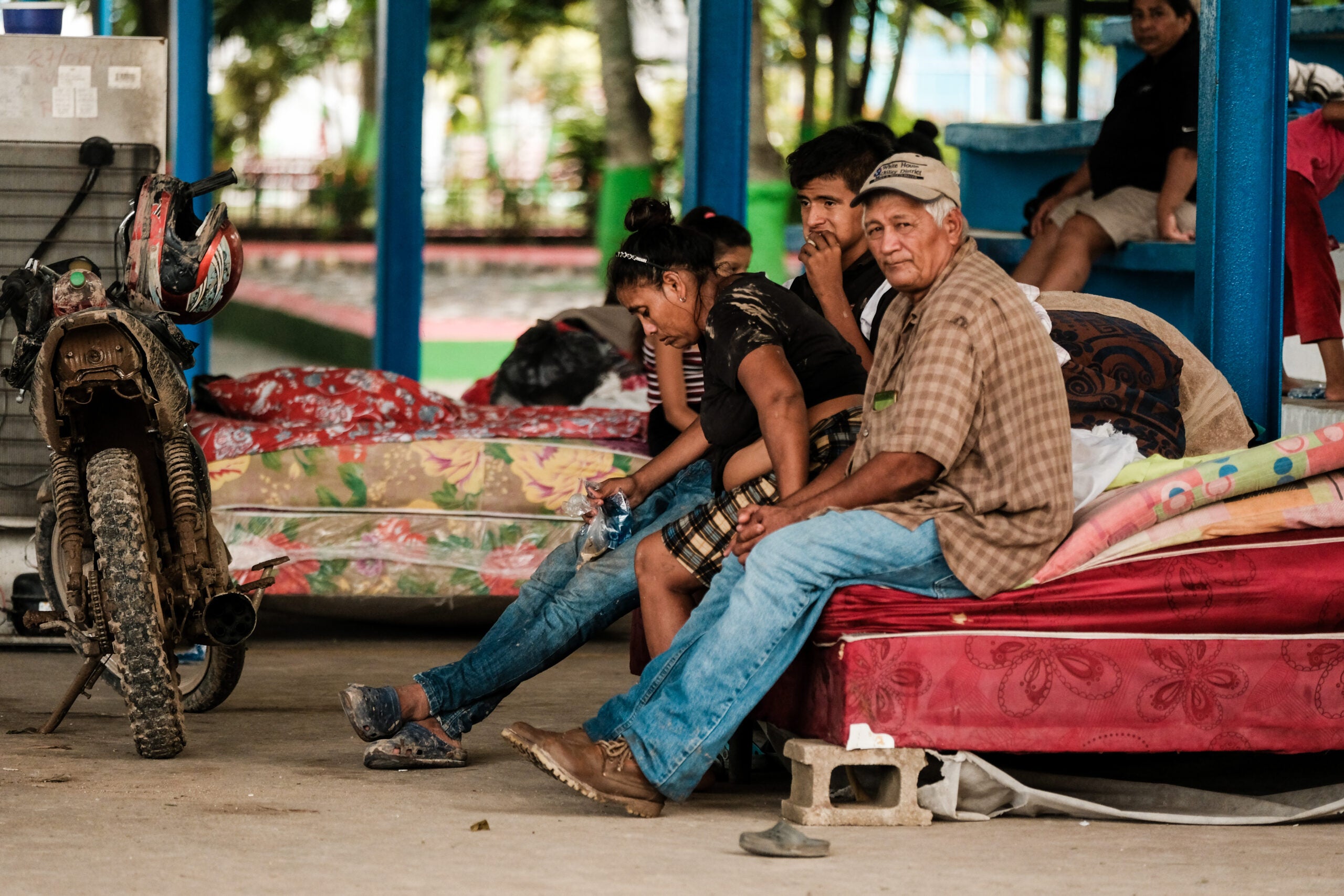 People impacted by Eta gather at a CARE-supported shelter for food, essential items like blankets, tarps and kitchen kits, water and sanitation support, and more.
