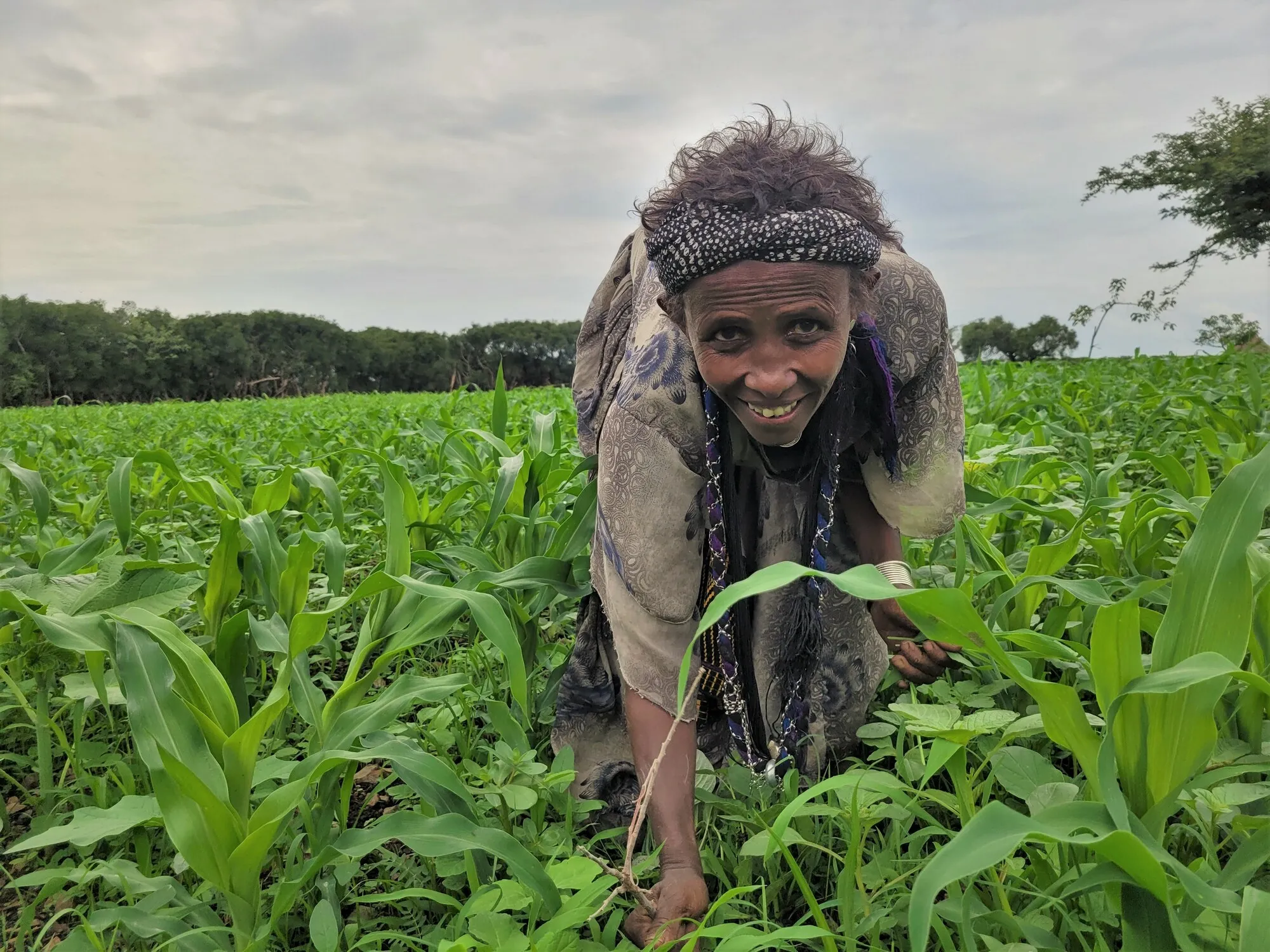 The area around East Belessa has been cleared of trees – part of the deforestation that contributes to the cycle of climate impacts – so finding the firewood can be difficult, and then when they do, the smoke from cooking with it can cause severe health issues in the eyes and lungs.