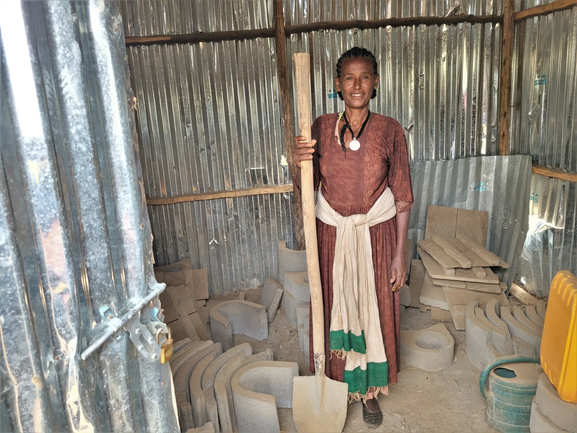 CARE provides training for women to learn how to build these energy-saving stoves, which they then can sell in their communities. Aster, 40, is one of six women in this village who CARE has trained.