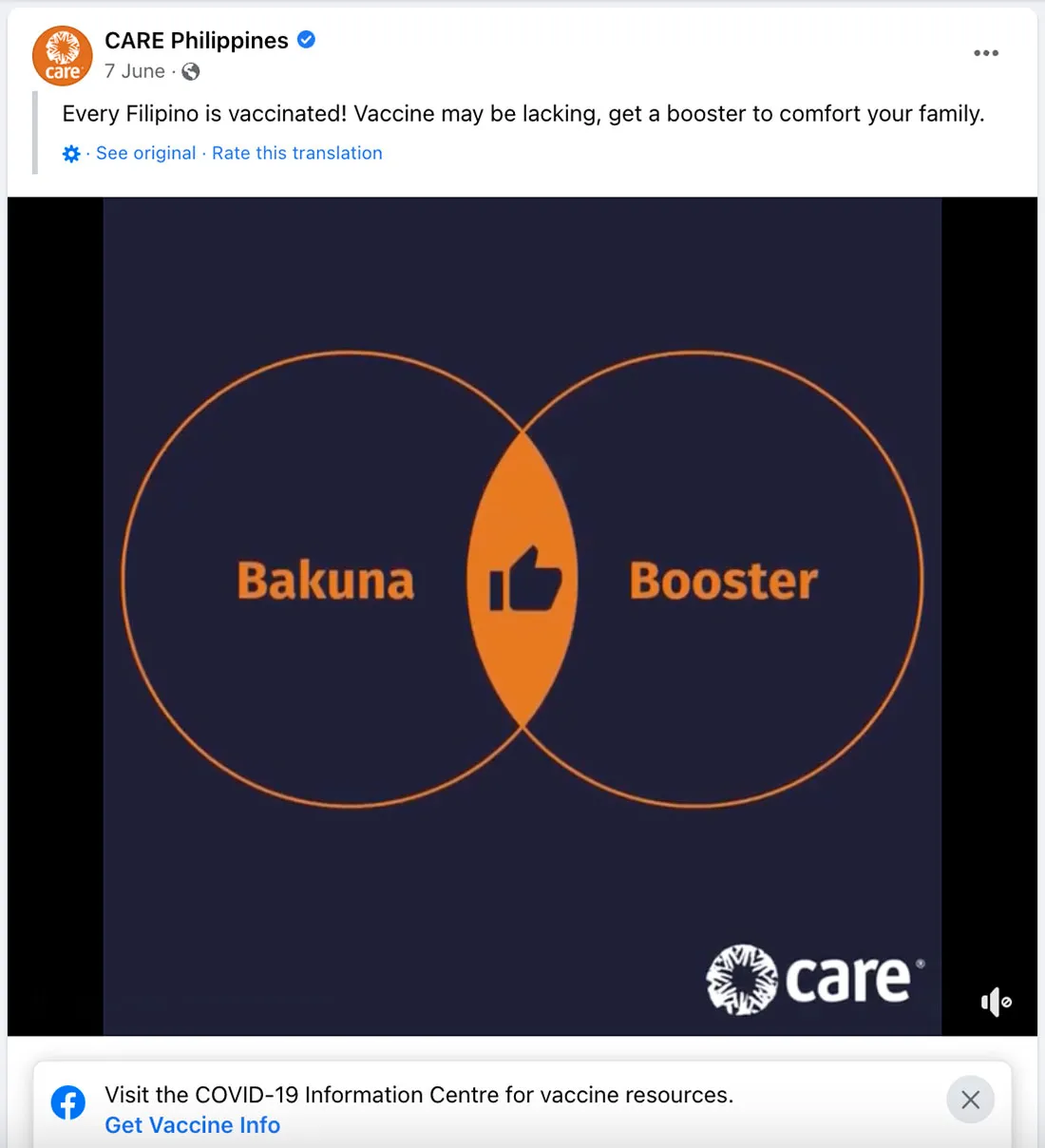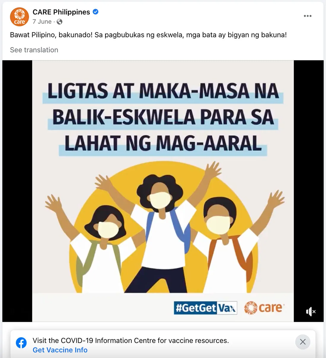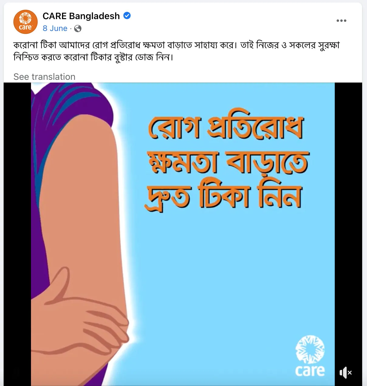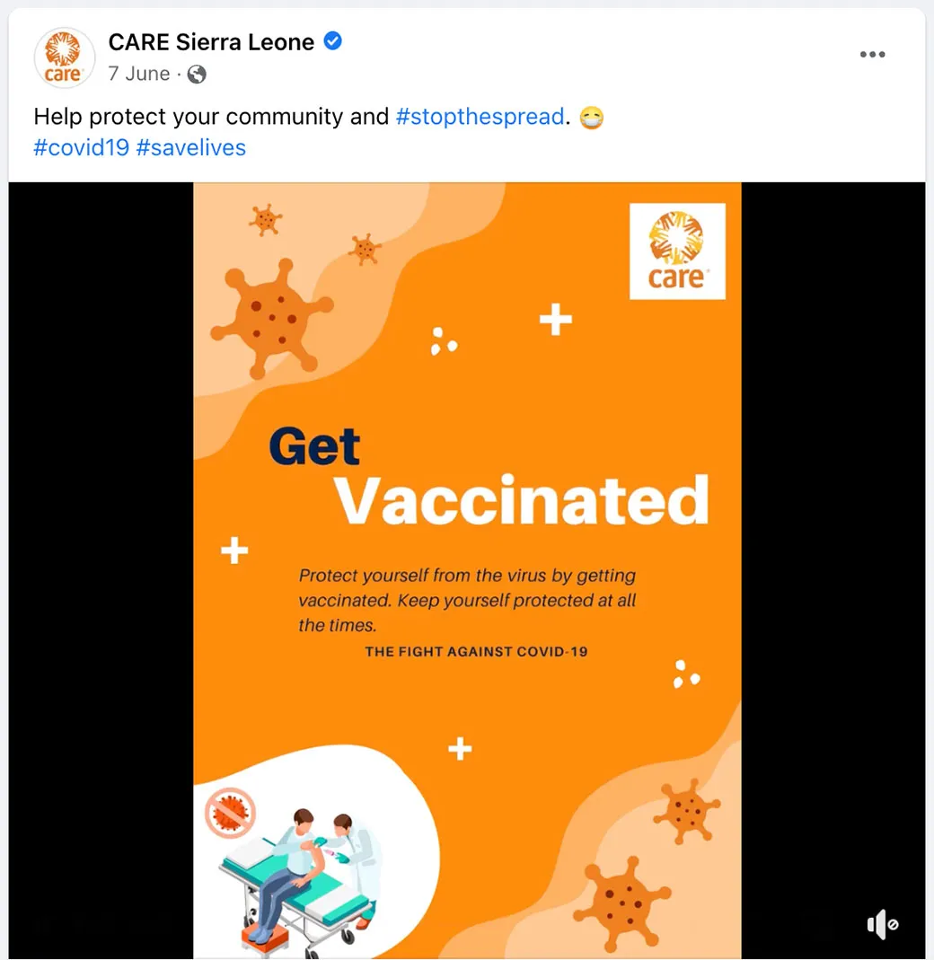 As part of a partnership with Meta, CARE ran a series of summer campaigns that promoted vaccine confidence and preventive practices in 16 countries across the globe.