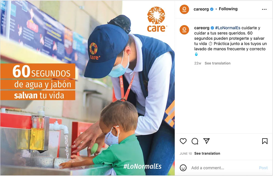 In Latin America, four country offices – CARE Guatemala, CARE Honduras, CARE Colombia, and CARE Ecuador – joined forces to design a campaign with the theme #LoNormalEs, or “Normal is”, which was then adjusted to suit each country context.