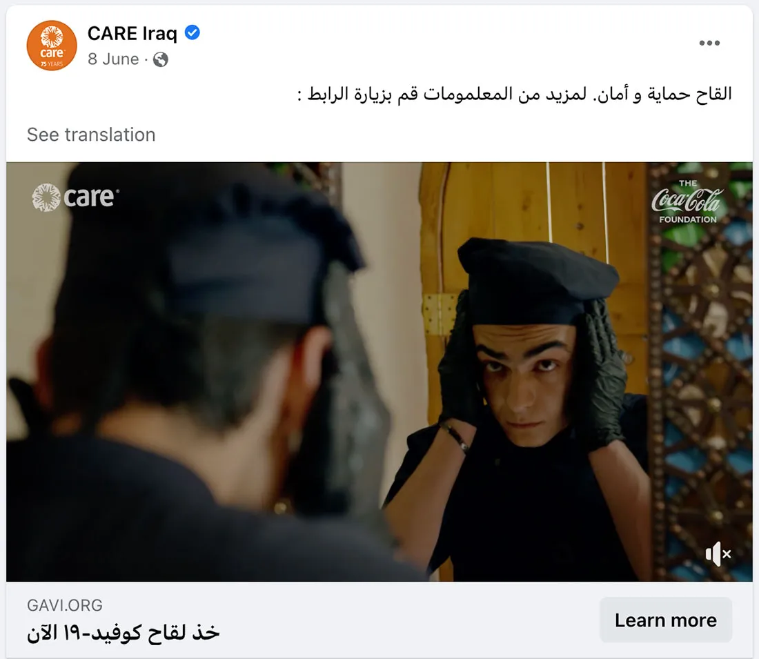 By monitoring creative performance weekly, CARE was able to refresh creative in real time. CARE UK noticed that many people in the United Kingdom were asking how many shots were needed for full vaccination. Taking these audience comments into account, CARE UK designed a second round of creative that mimicked Pakistan’s strategy of clearly laying out full vaccination. This ad went on to have the country’s highest click through rate (0.3%).