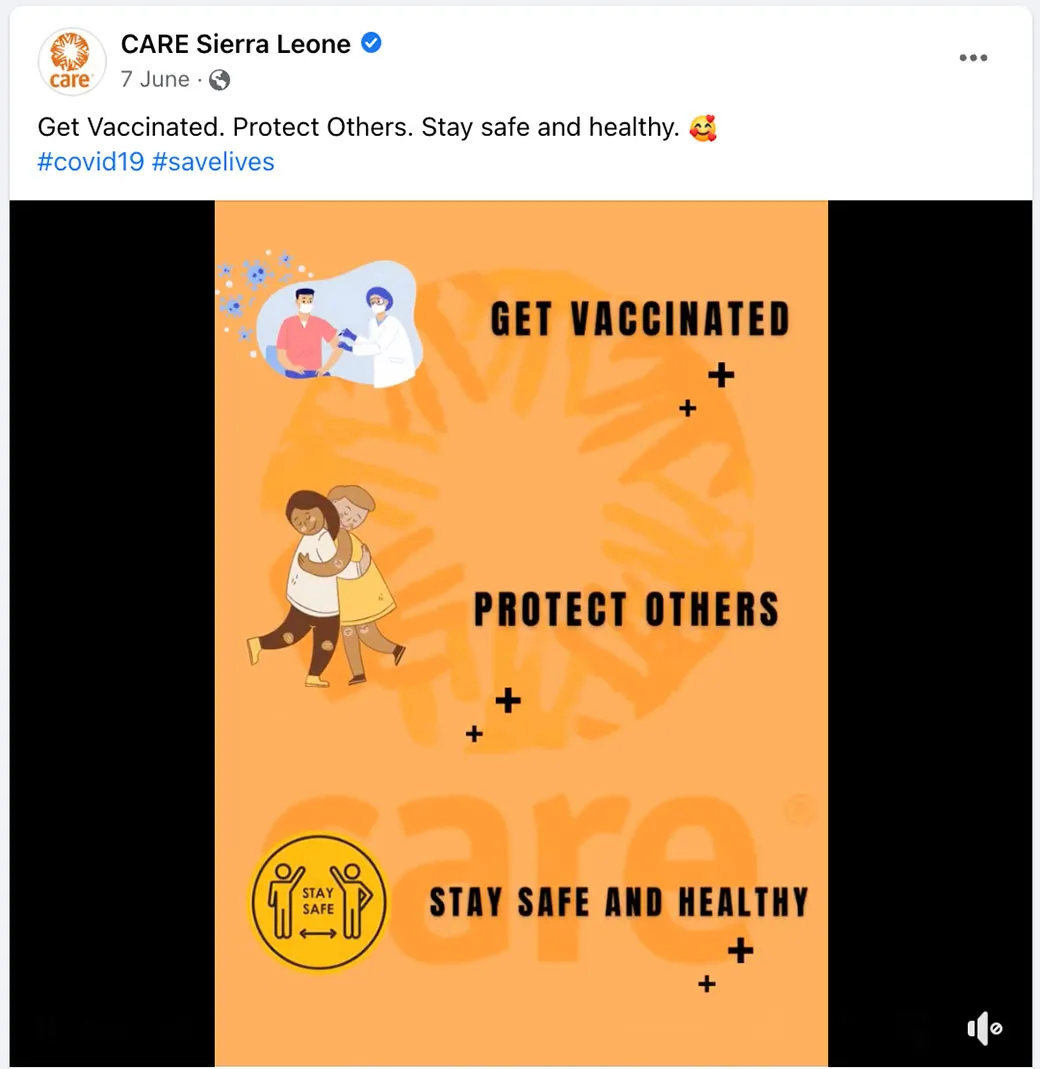 CARE Sierra Leone strategically designed bright, animated images that allowed for strong visibility in social media feeds that were deployed in both Sierra Leone and Liberia.