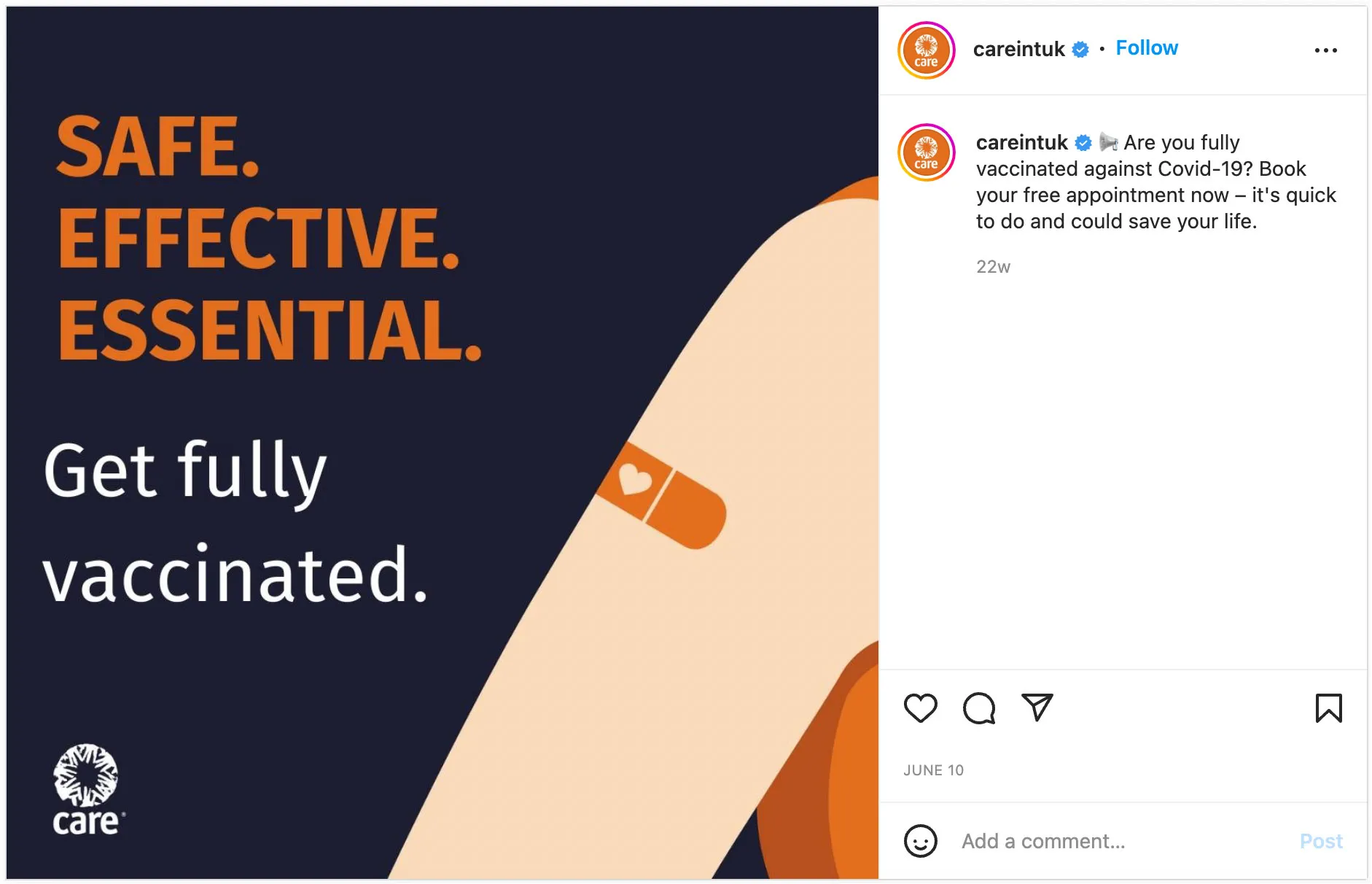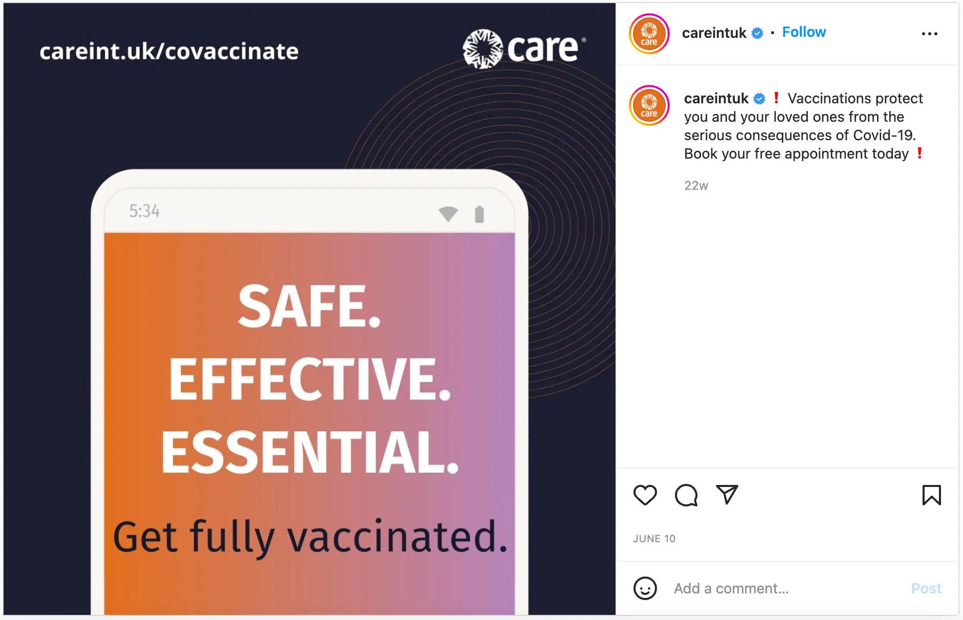 From June 13 to July 18, CARE launched creative ad campaigns that were locally designed and led by country offices, which tailored content to suit their country contexts. During this campaign series, six country offices joined the practice of SBCC campaigning for the first time: Zimbabwe, Zambia, UK, Honduras, Ecuador, and Colombia. All other participating countries (Bangladesh, Ghana, Guatemala, Haiti, Iraq, Pakistan, Philippines, Sierra Leone, and USA) built on their existing experiences utilizing social media as an SBCC modality.