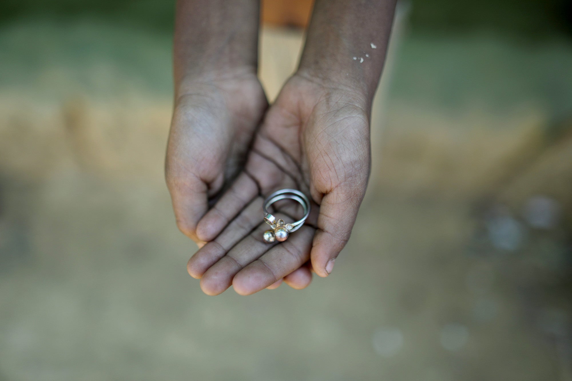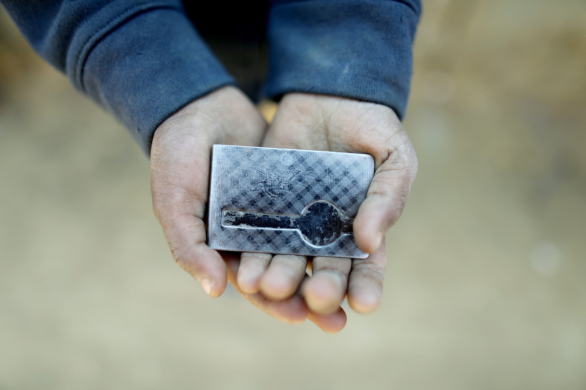 Five-year old Rohit found this belt buckle. He keeps it with him because it’s shiny and – he believes – valuable.