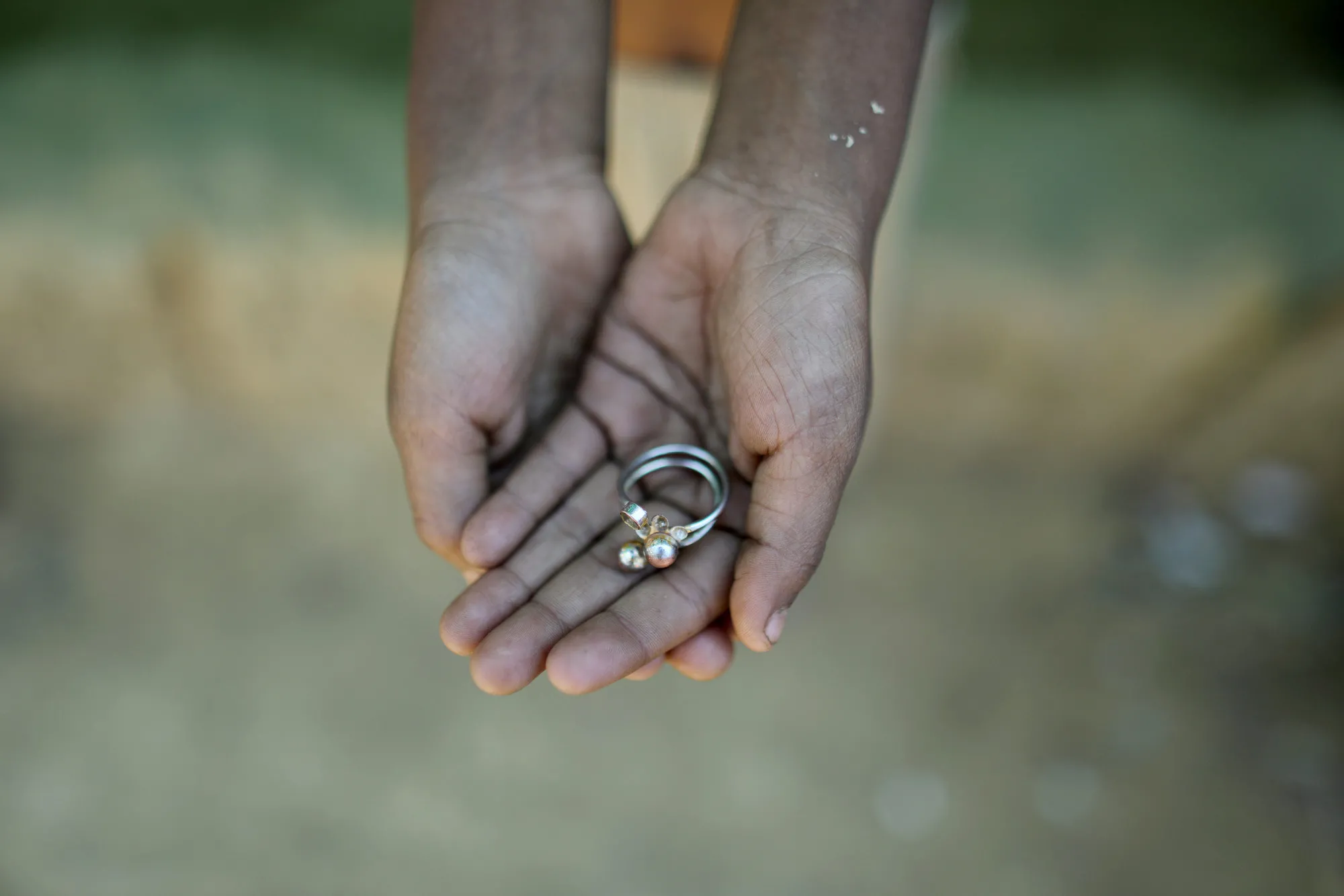 Five-year old Rohit found this belt buckle. He keeps it with him because it’s shiny and – he believes – valuable.