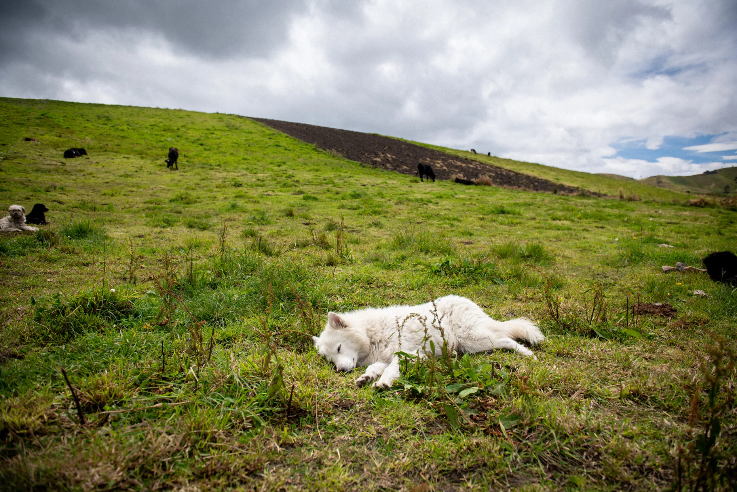 Dogs of all shapes and sizes trail behind the members of the San Juan Women’s Group, at least one for every farmer. Some boast more robust entourages of two or three scampering mutts, who flop happily onto tufts of bright green grass or into the freshly turned earth, napping in the sun while their humans toil. Rising just over the ridge, the snowcapped, volcanic peak of Chimborazo watches silently over their work.