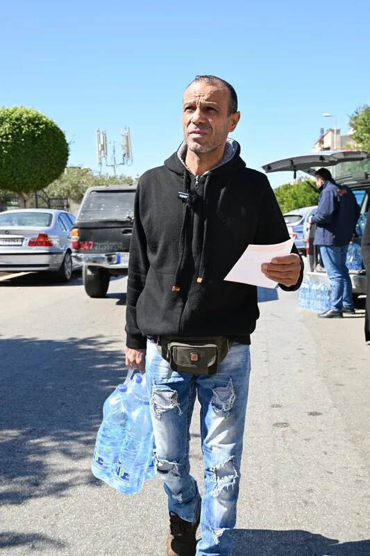 March 5, 2026: CARE distributes bottles of water to internally displaced people in Beirut