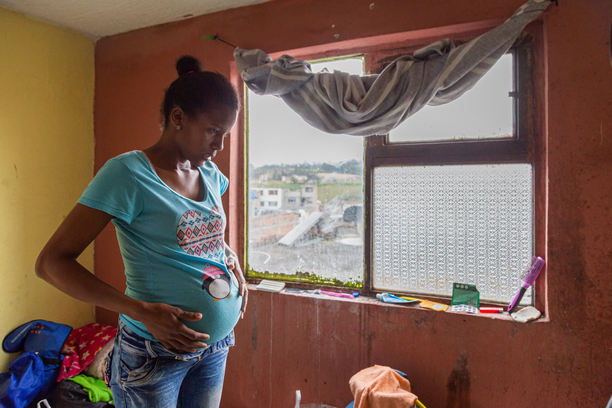 Desiré, 18, arrived in Ecuador with her one-and-a-half-year-old daughter Noa and spent four days living on the streets until they were able to find temporary shelter.