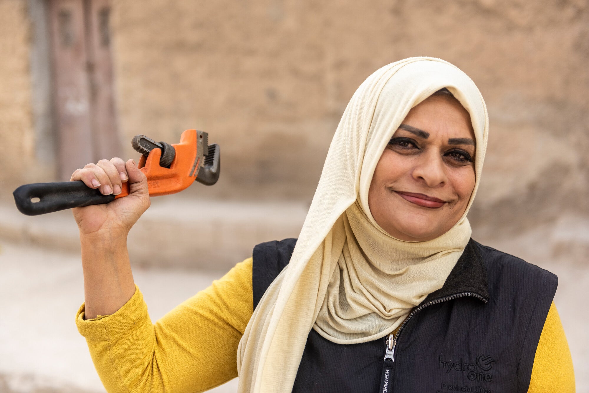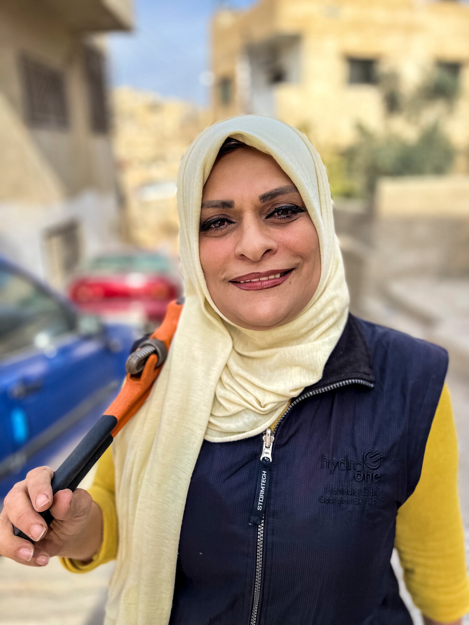 So Ra’edah, who has a university education and worked as a teacher before starting her family, took a classroom training course. Then she began an apprenticeship with a male plumber in Zarqa, Jordan, where she lives and works today, under 30 km (18 miles) from the capital city of Amman. Gradually, she did more of the work on her own, and impressed her trainer with how capable she was.