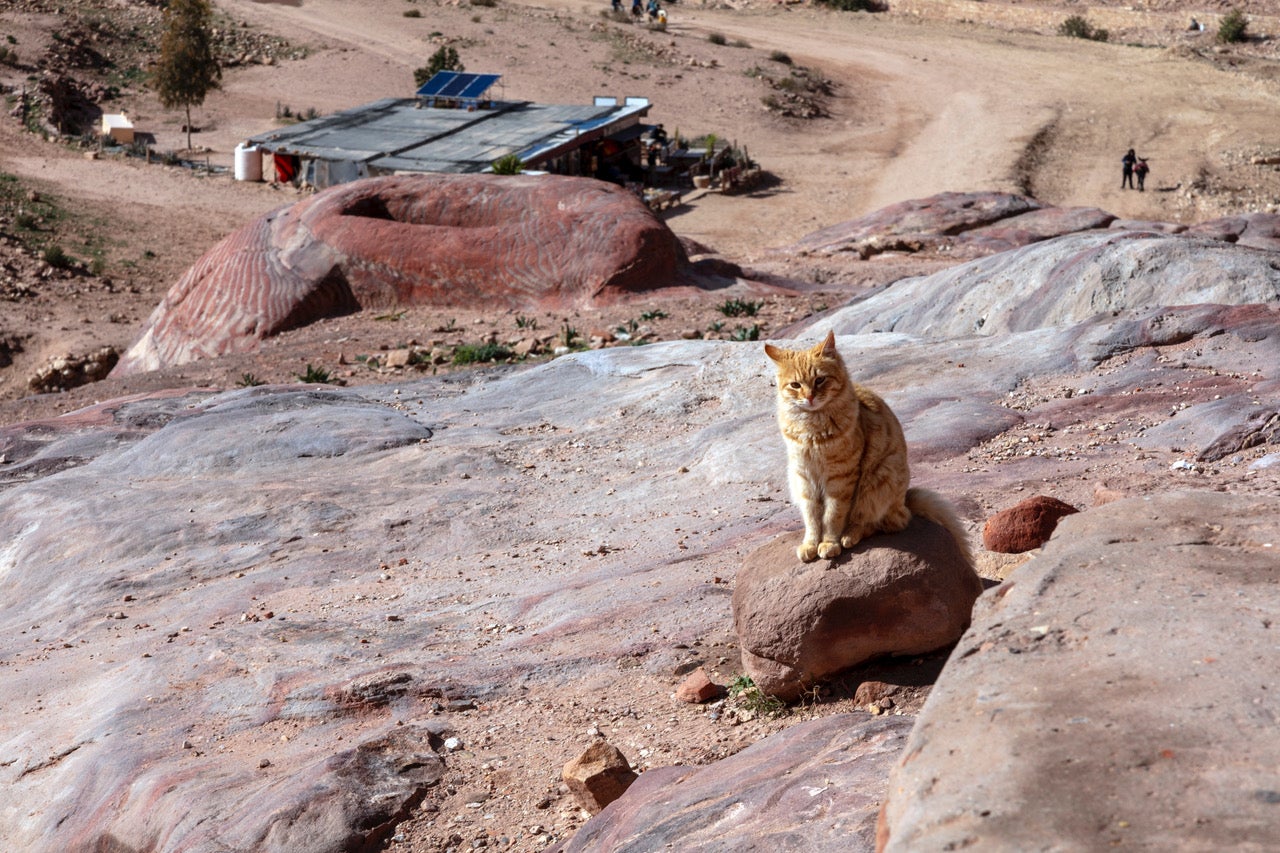 A stray cat finds a high vantage point to survey the ruins of Petra, a UNESCO World Heritage site in Southwest Jordan in 2019. Photo: Laura Noel/CARE