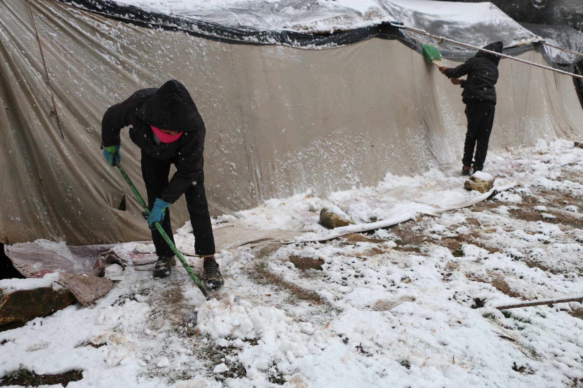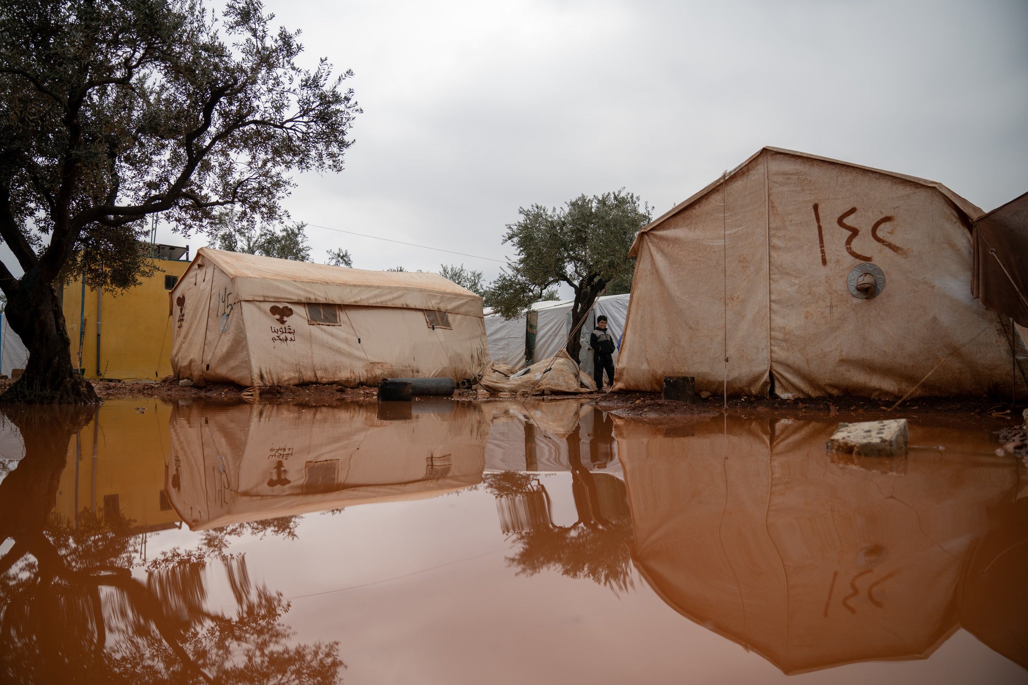 More than 22,000 displaced people have lost their temporary homes as heavy rains, flooding, and snow damages and destroys over 4,000 tents at displacement camps in northwest Syria. One child has died and three other people were injured as a result of the harsh weather conditions.