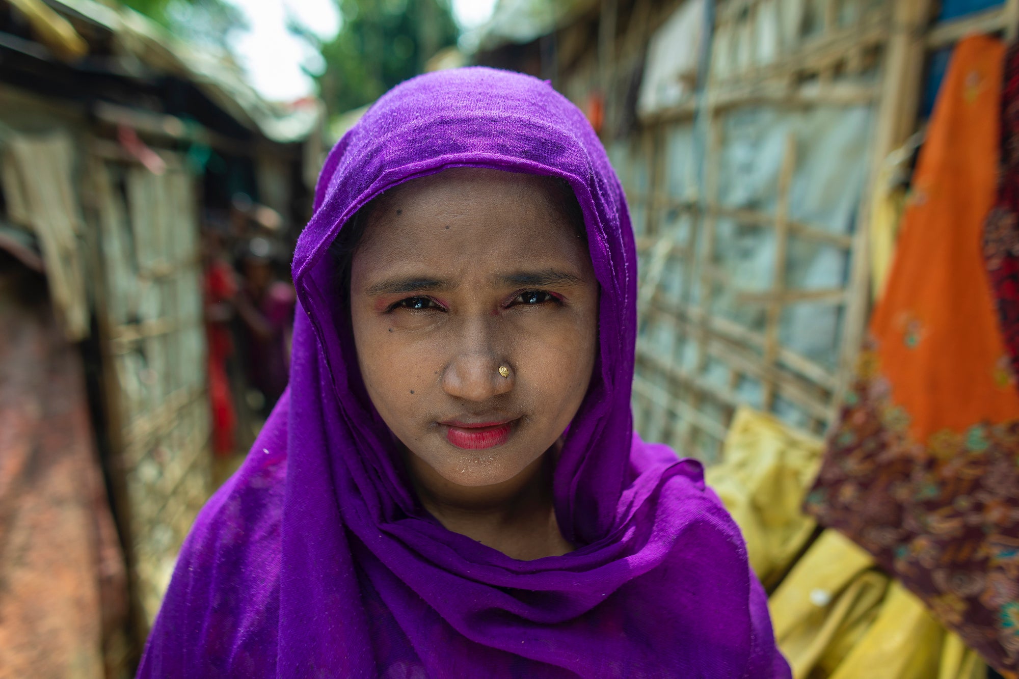 Seno Wara, a Rohingya refugee from Myanmar, fled to Bangladesh together with her husband and their three daughters, ages 7, 3, and 1. They are part of the more than 900,000 Rohingya refugees from Myanmar who fled Bangladesh after violence escalated in Myanmar’s northern Rakhine State in 2016. Around 80 percent of these refugees are women and children. Seno Wara’s family now lives in limbo in a refugee camp in Bangladesh.