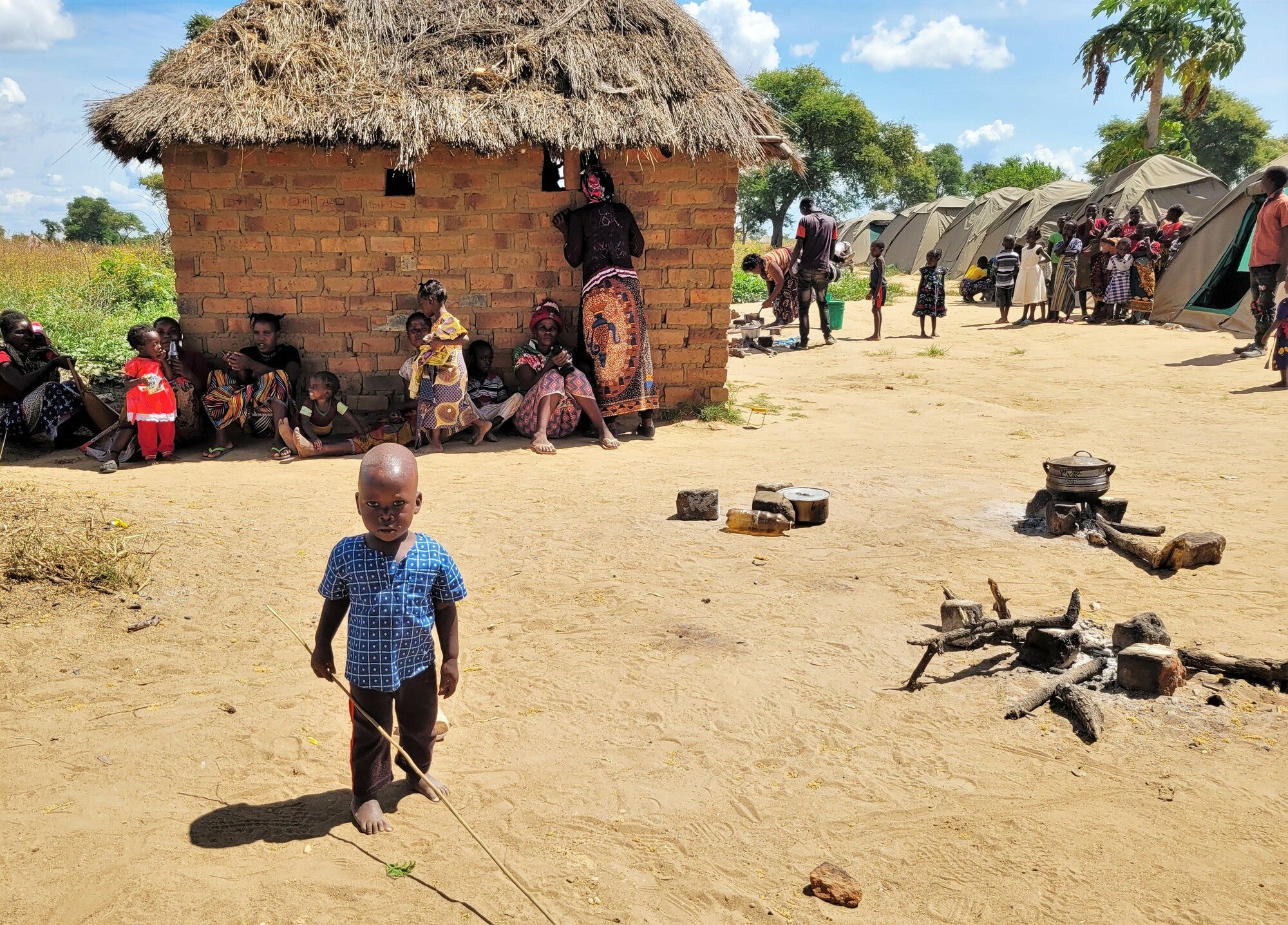 In Zambia, nearly 375,000 people have been affected by the climate-fueled floods in between January and March 2023, including families in this rural IDP camp. Photo: Sarah Easter/CARE