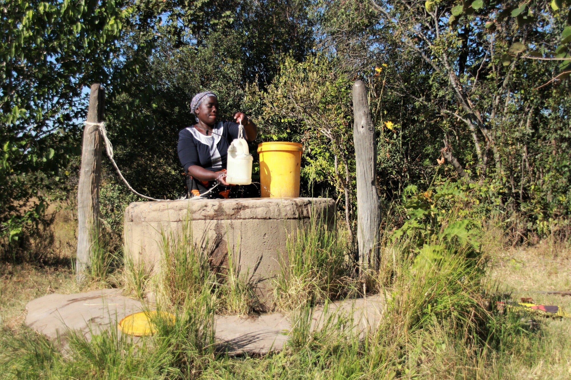 Mable, a member of the CARE project, getting water from the village well. Photo: Denise Schneider/CARE