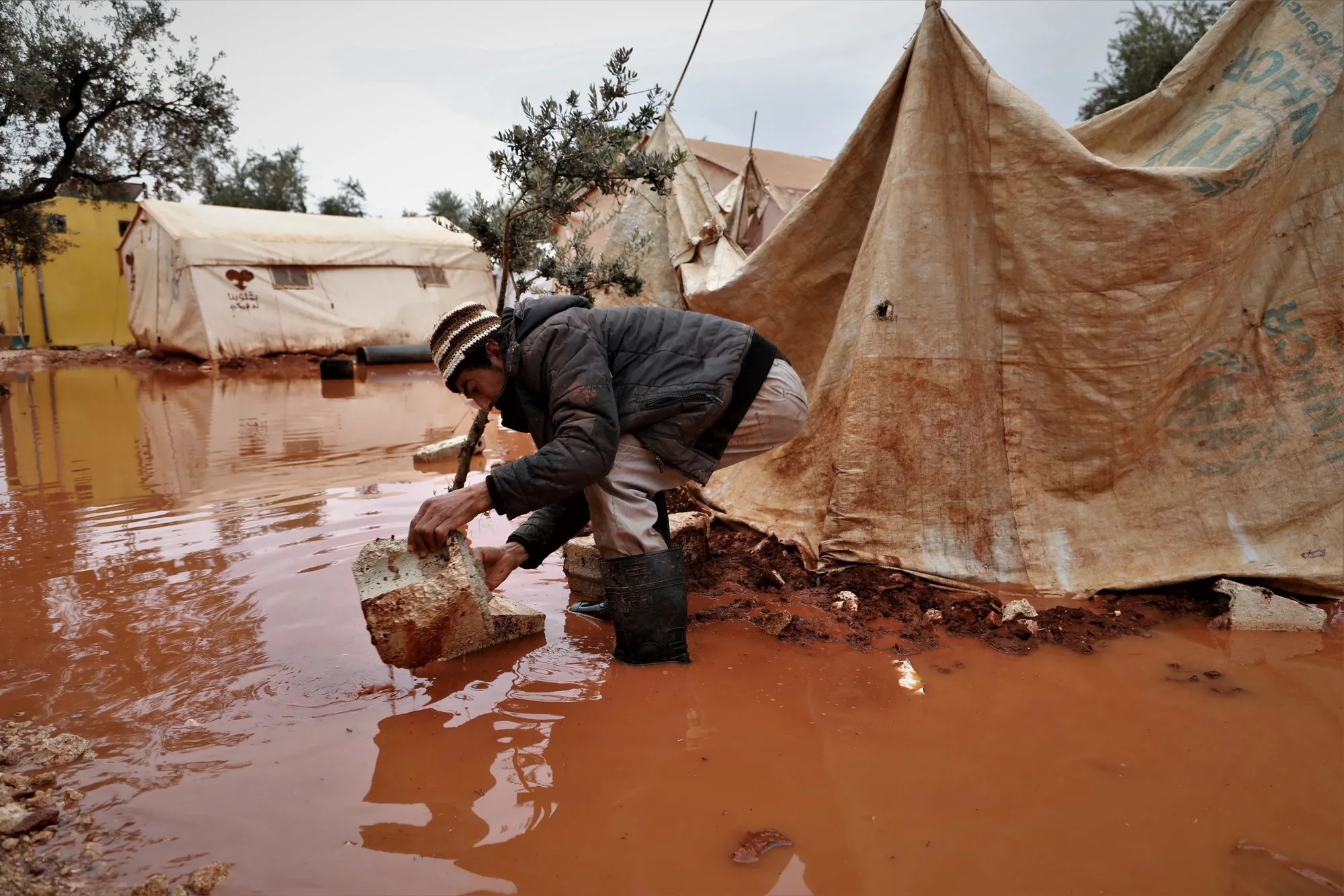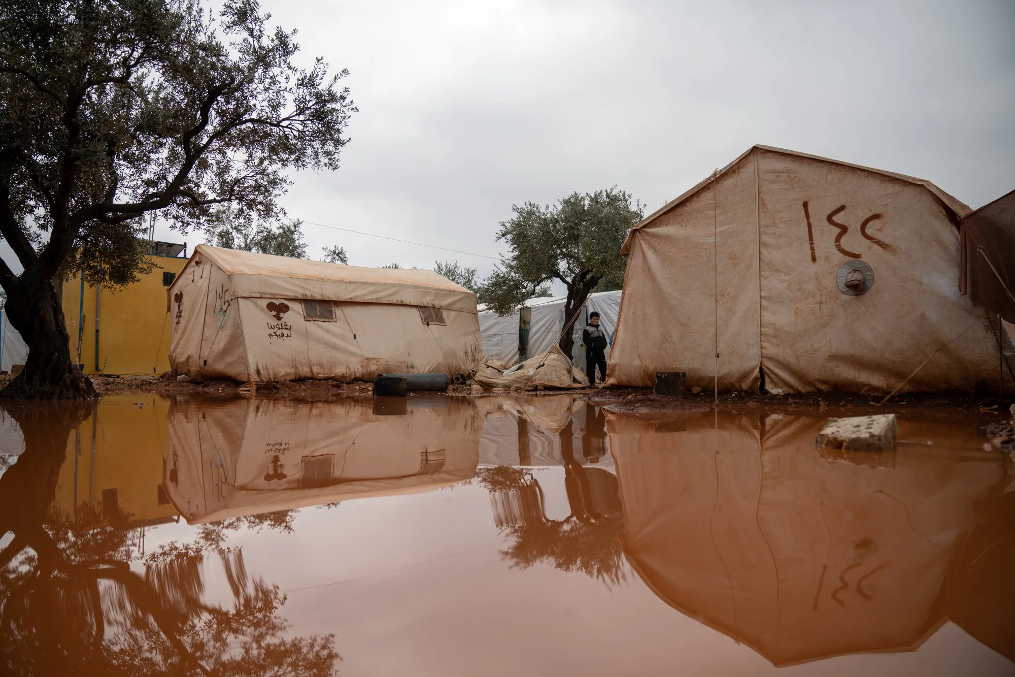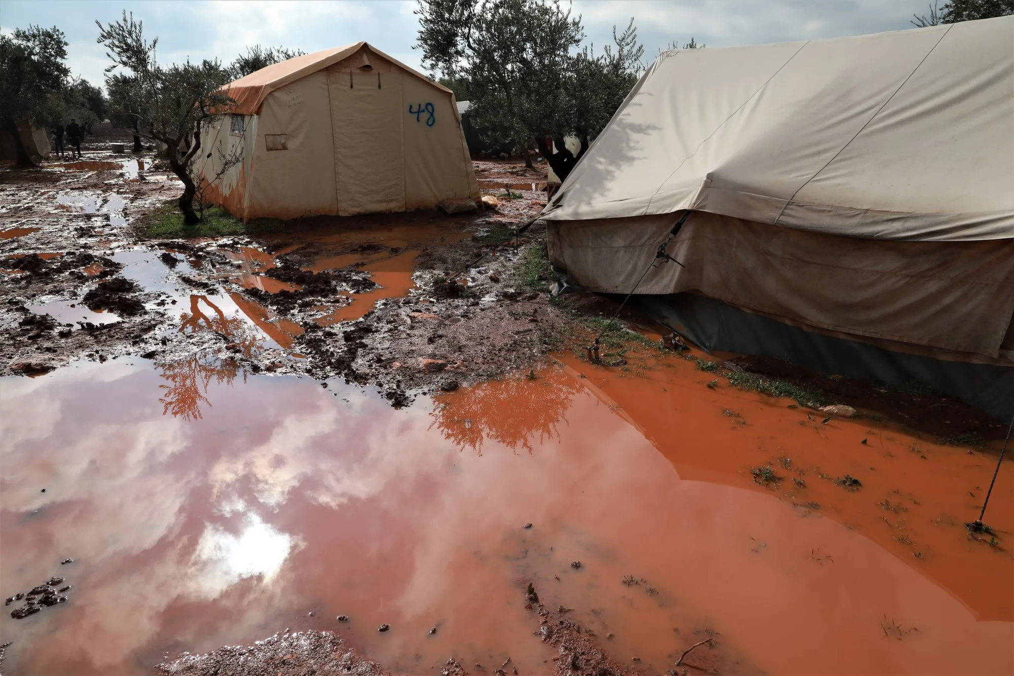 The storm has turned camps into lakes.