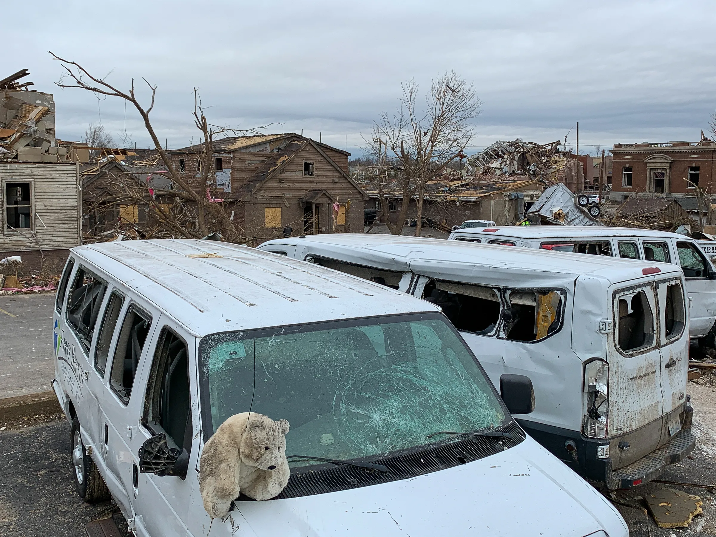 Roofs torn off. Trees uprooted. Century-old structures reduced to rubble. Power and water lines cut. And families mourning loved ones lost in a wave of tornadoes that swept across six states on Friday, Dec. 10. This photo essay from western Kentucky provides just a glimpse of the devastation this disaster brought about, and the immensity of the task ahead.