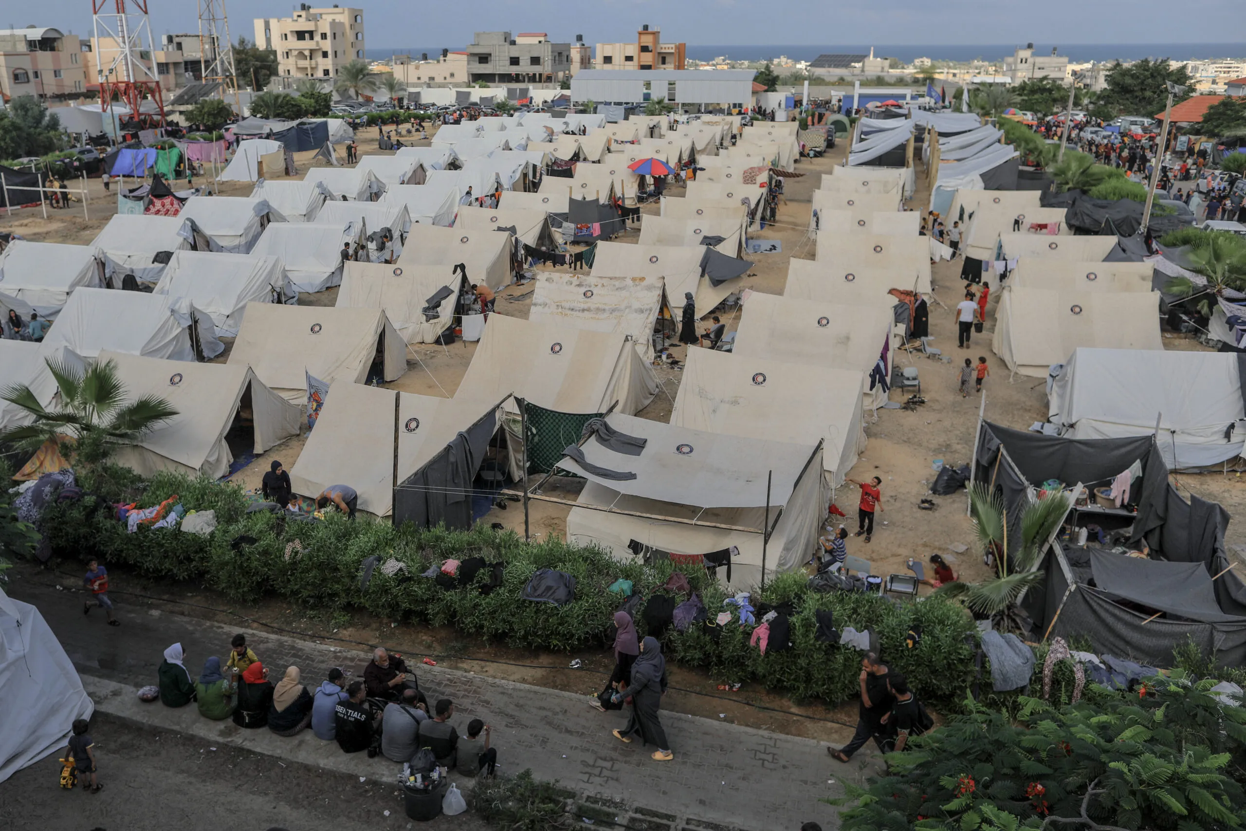 Palestinians displaced by the Israeli bombardment of the Gaza Strip are seeking refuge in a tent camp in Khan Younis, in southern Gaza. Photo: Grayscale Media