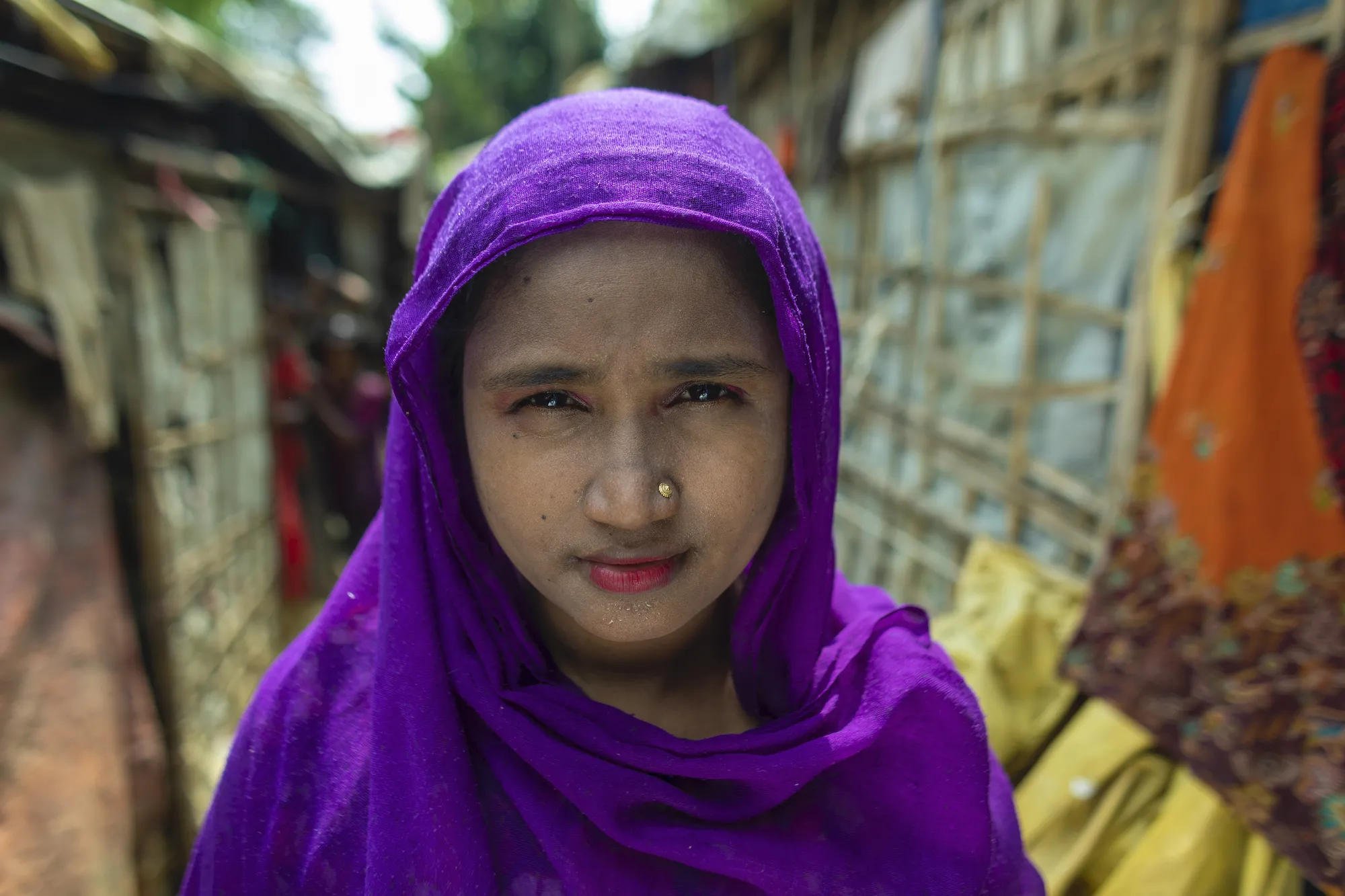 Seno Wara, a Rohingya refugee from Myanmar, fled to Bangladesh together with her husband and their three daughters, ages 7, 3, and 1. They are part of the more than 900,000 Rohingya refugees from Myanmar who fled Bangladesh after violence escalated in Myanmar’s northern Rakhine State in 2016. Around 80 percent of these refugees are women and children. Seno Wara’s family now lives in limbo in a refugee camp in Bangladesh.