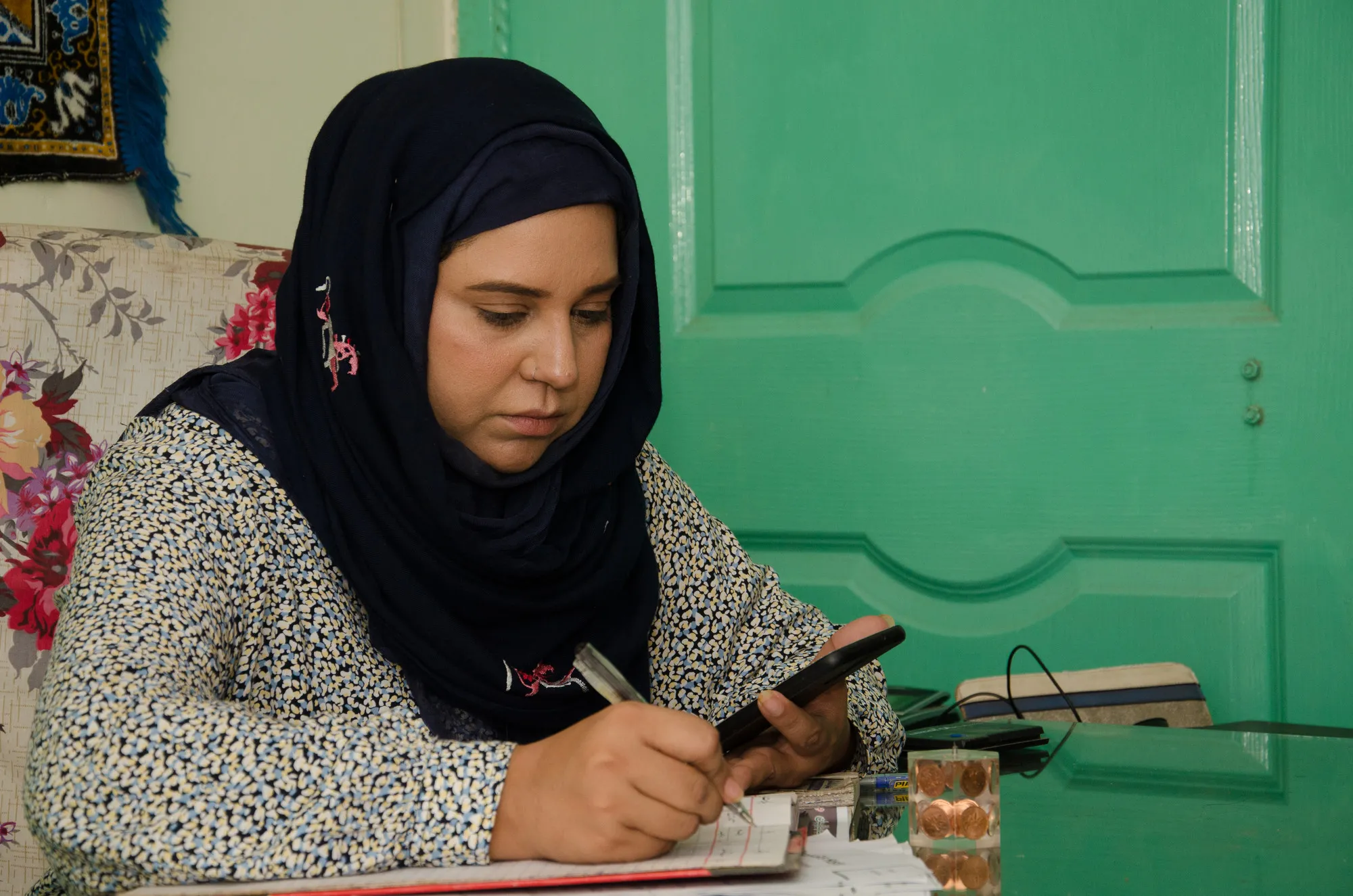 Hina Sadaf Butt, a Pakistani woman entrepreneur, tracks the finances of the student hostel she runs. (Photo: CARE Pakistan)