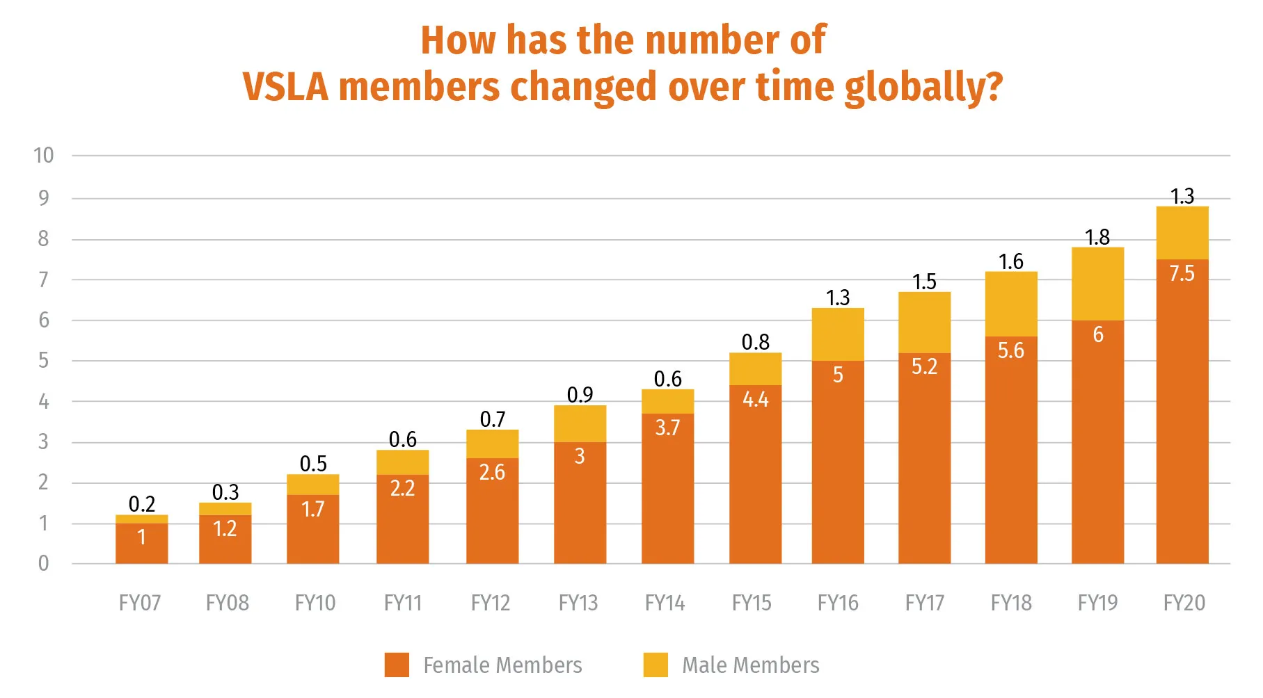 Our COVID-19 response has needed to be fast and agile. With the guidance of inspirational VSLA members across the globe, the support of our donors and the ingenuity of our partners, we have continued to adapt and flex. VSLAs have become a force for good during this pandemic, supporting community responses, sharing important health messages and re-focusing finances to adapt to the crisis. Despite the challenges, we have doubled the pace of new VSLA group formations, adding almost one million new VSLA members in 2020.