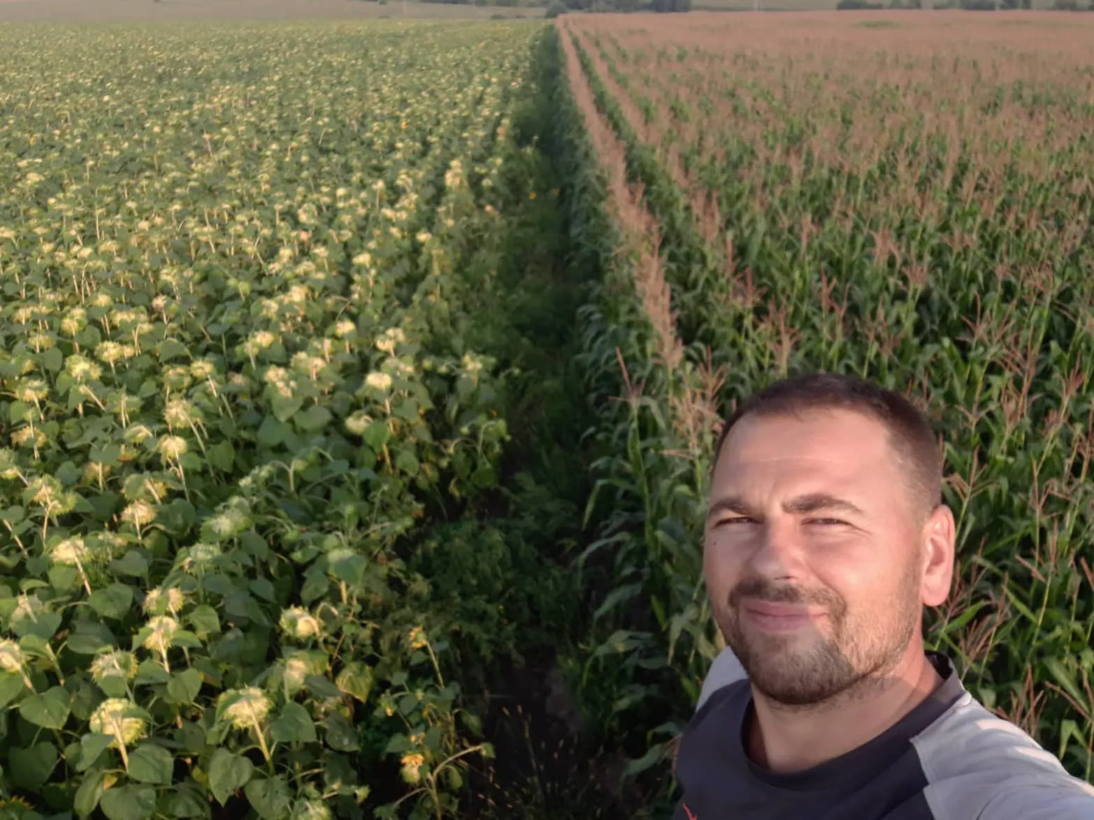 Sergij — along with his father, his wife Anastasia, and their 4-year-old daughter — has been working on the family farm since the war began.