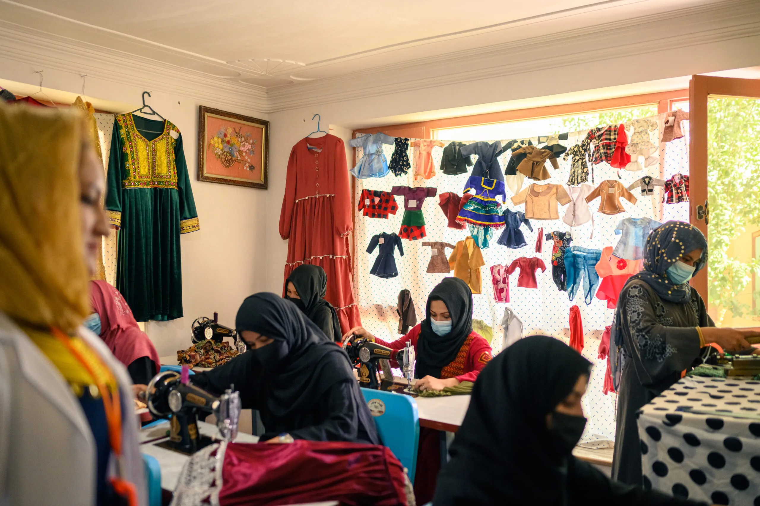 Here, at CARE Ghazni’s Womens Friendly Health space, women and girls receive psychosocial support, prenatal educational courses with midwives, and they learn the trade of tailoring.