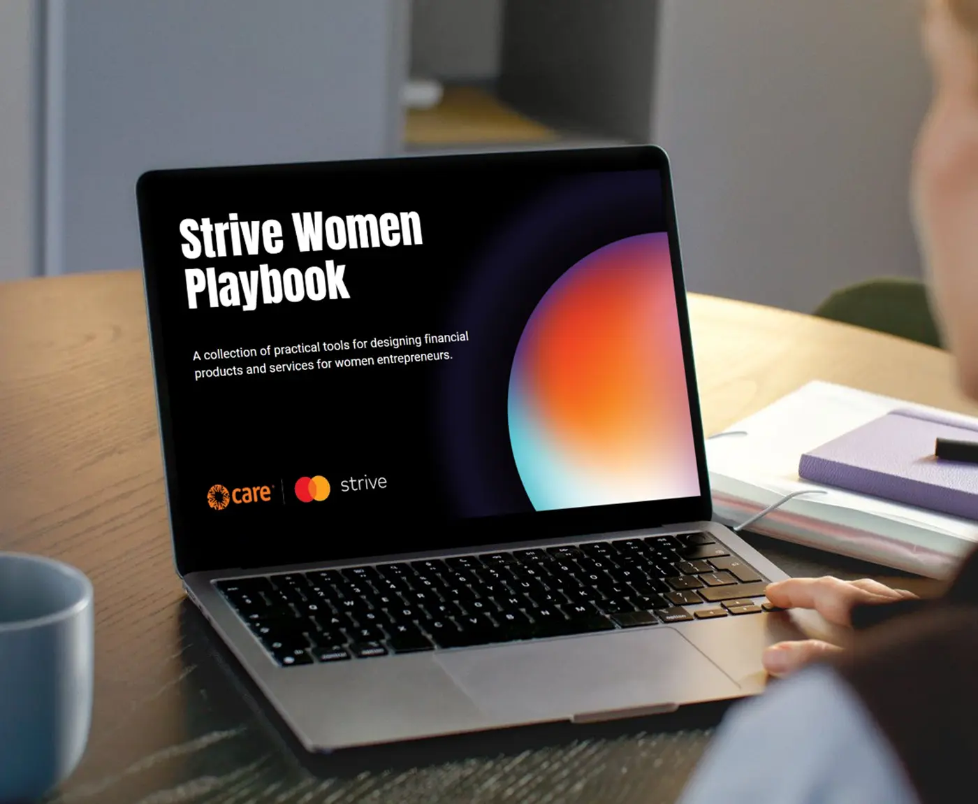 A laptop with the digital Strive Women Playbook displayed on the screen.